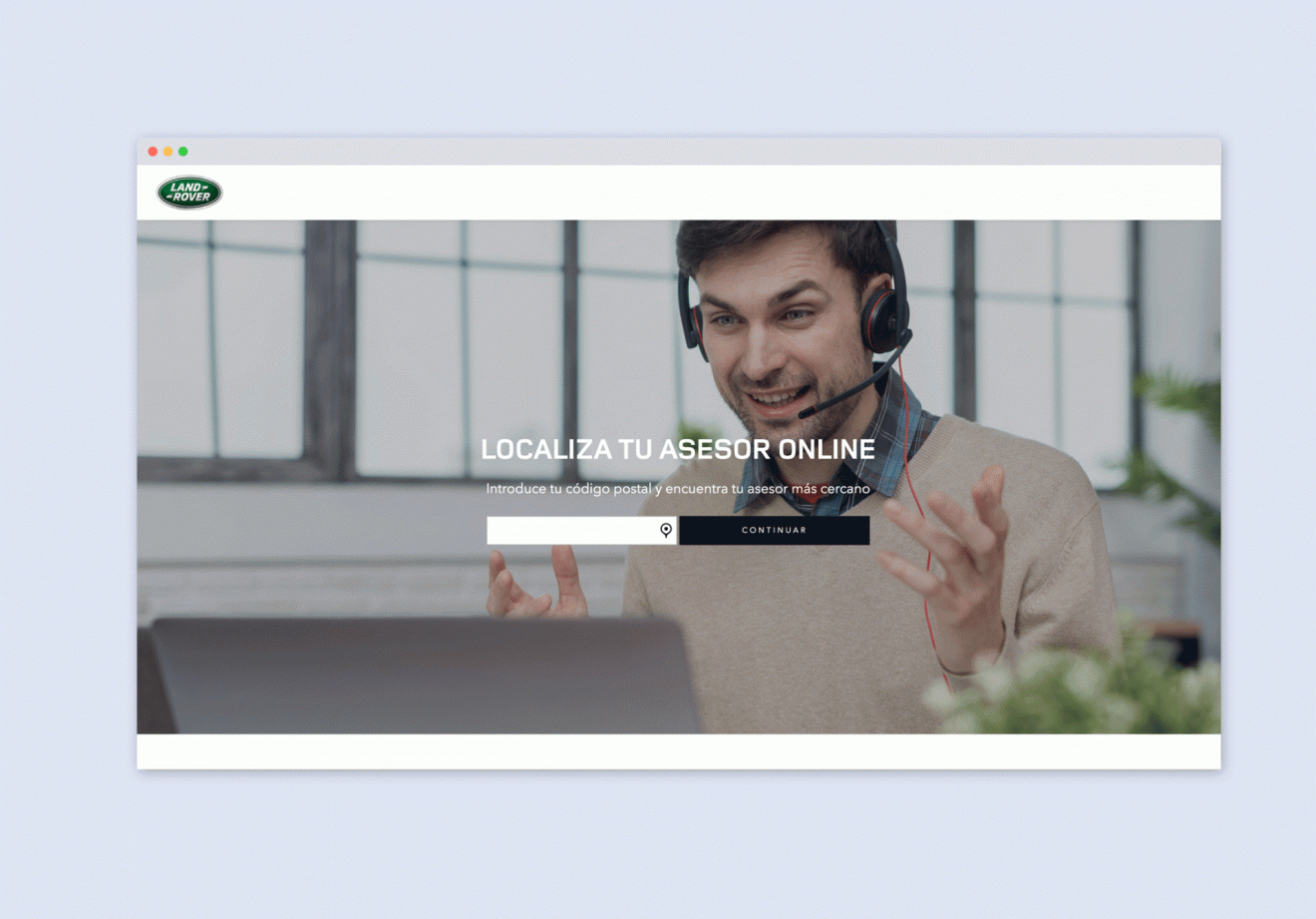 La segunda fase del proyecto fue permitir que los clientes pudieran localizar a su asesor más cercano. Para ello se desarrolló un buscador de asesores por código postal, visible desde el site central de Jaguar Land Rover España y Portugal.