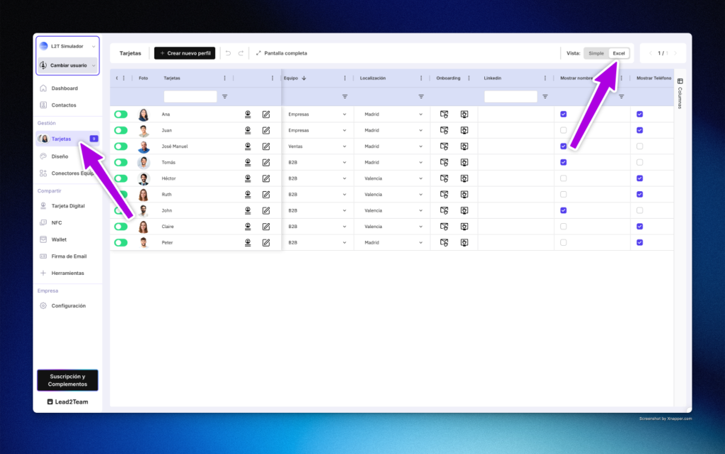 When you have finished creating your custom fields, go to Cards > Excel View and complete the data for each person.